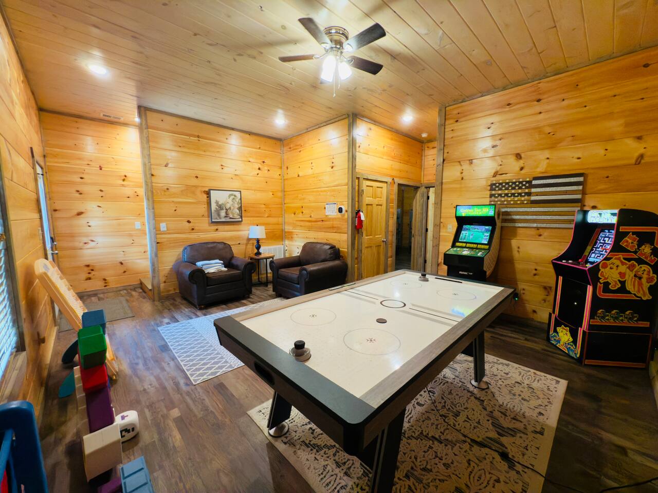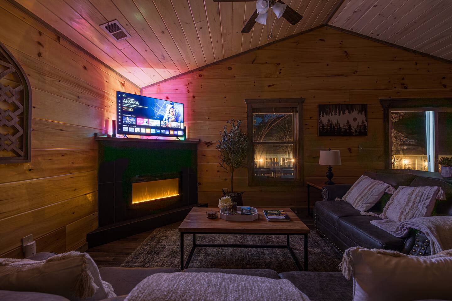 We refreshed the cabin in Feb 2026 with a brand-new lower deck, relocated fire pit, updated games, and freshly painted accent walls to make the space even cozier. And now โ introducing our private heated glamping dome ๐ A unique, cozy retreat just steps from the cabin, featuring a comfortable queen sofa bed โ perfect for stargazing, a romantic escape, or giving kids their own adventure space. KEY FEATURES โ 4 sleeping areas โ 2 king bedrooms, 2 bunk beds (4 twins), + private heated dome suite with Dyson Heat/Cool Fan. โ 2 full bathrooms โ Fully stocked kitchen with stainless steel appliances โ Cozy living room with indoor fireplace + flat-screen TV โ Reading nook with vinyl record player โ Lower-level lounge with TV, arcade + air hockey โ Outdoor wood-burning fireplace โ Large deck with seating, hot tub, wooded backyard & mountain views โ Washer + dryer โ Peaceful location just minutes from shopping & dining โ Free parking for 2-3 vehicles GAME ROOM FUN โ Air Hockey โ Multi-game Arcade (Pac-Man & Golden Tee) โ Giant Connect 4 (3.8 ft) โ Giant Tetris Tumble XL โ Giant Plinko (3.5 ft) ๐ Private Heated Glamping Dome Experience One of the most unique features of our property is the transparent glamping dome. Designed as a multi-use retreat, the dome can serve as a cozy fourth sleeping space with a comfortable queen sofa bed or as your own private escape for relaxation, connection, and quiet moments. Its clear, panoramic walls create a truly immersive experience. During the day, youโre surrounded by forest views. At night, you can lie back and stargaze from the comfort of a heated space. When it rains, the gentle rhythm on the dome above creates a peaceful, almost therapeutic atmosphere โ imagine sitting inside, wrapped in a blanket, listening to the rain while staying warm and dry. Whether you use it as: โจ An adventurous sleeping space โจ A quiet reading or reflection lounge โจ A place to reconnect under the stars The dome offers an experience you wonโt find in a typical mountain cabin. Itโs more than just an extra room โ itโs a memory-making space.